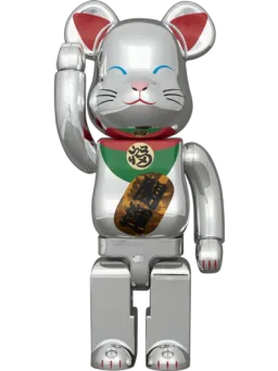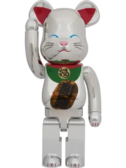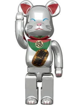 Manekineko Lucky Cat Senmanryou Clear Iridescent x Silver Paint + Bearbrick
